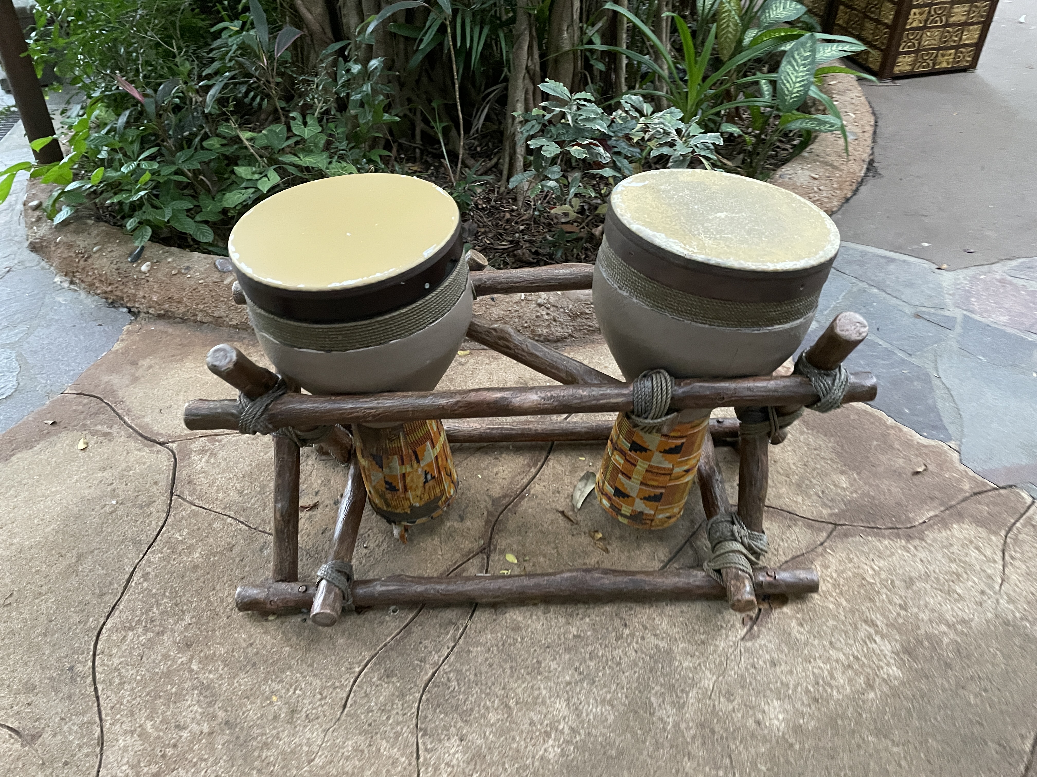 길 건너편에는 부족의 북으로 가득 찬 공간이 있어