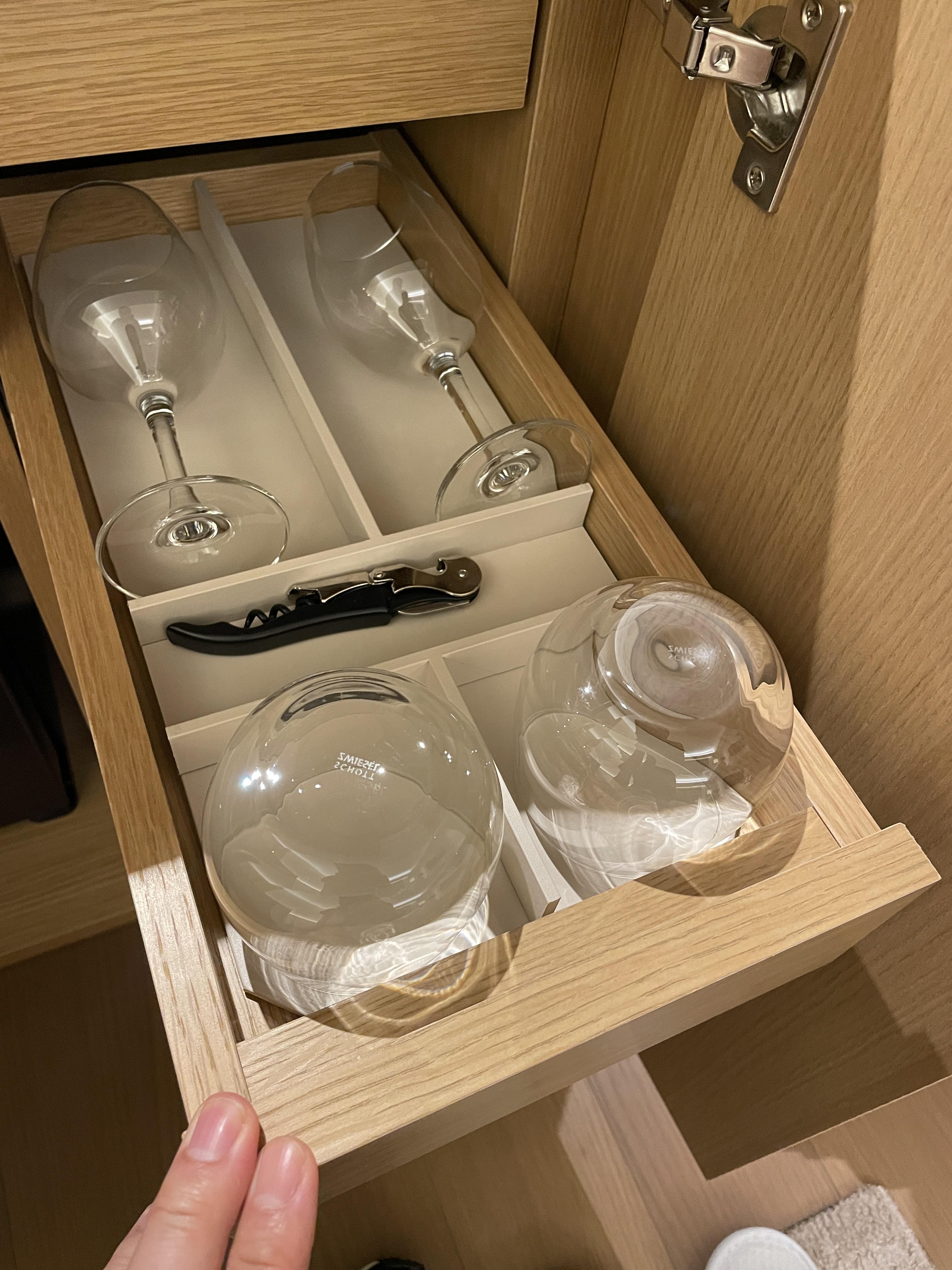 컵과 와인 잔이 준비되어 있고요.