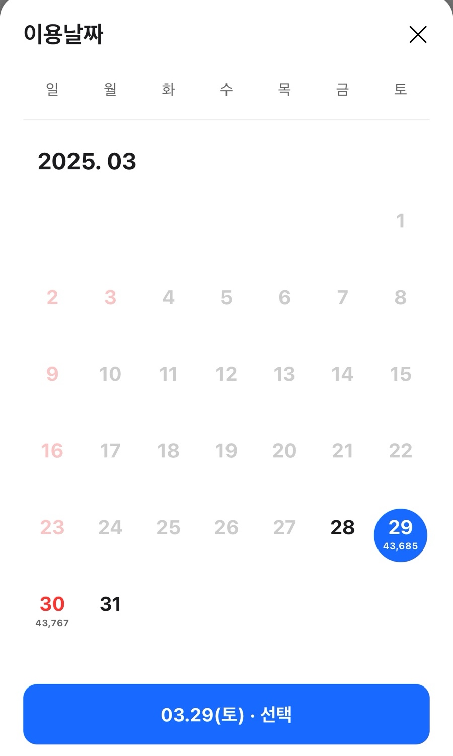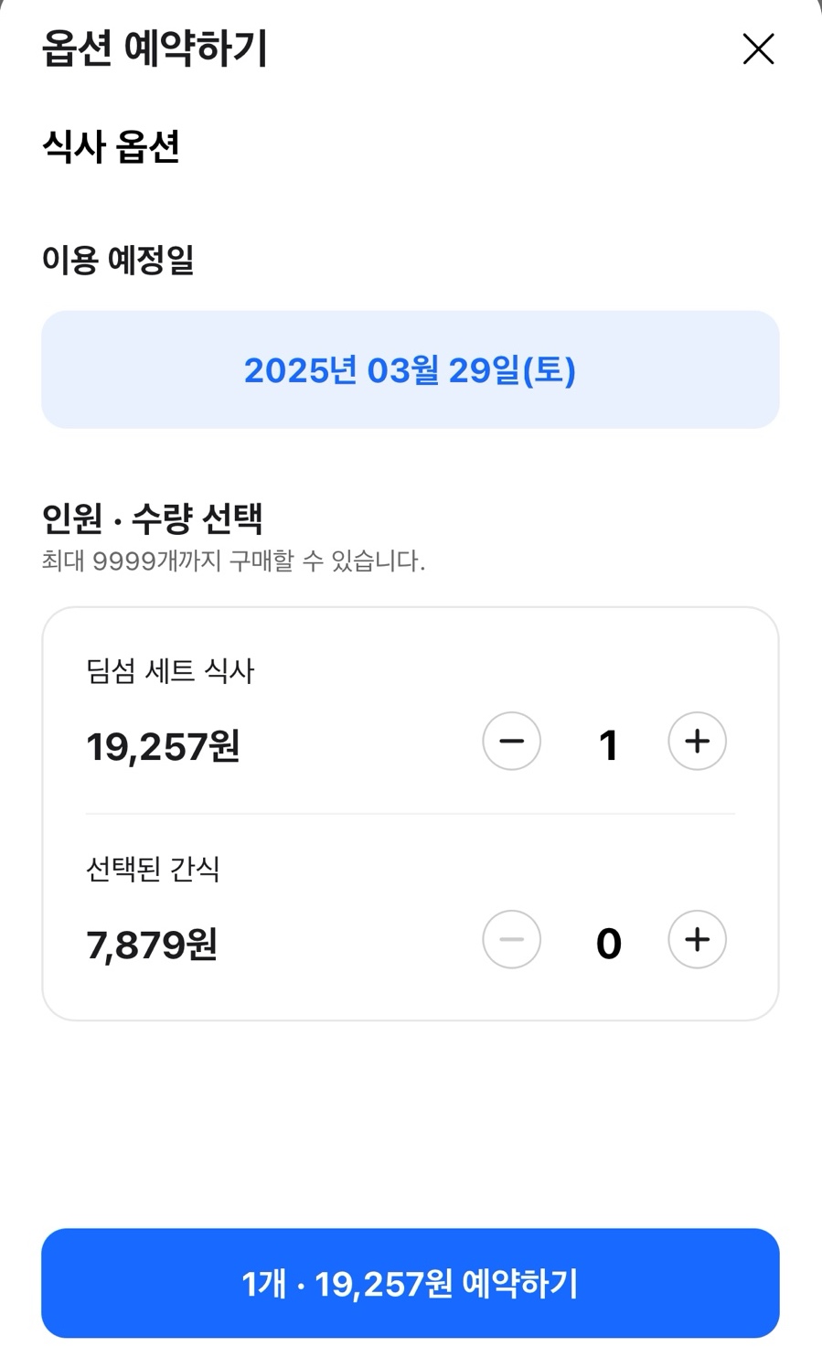 예약 가능한 일정을 선택하고 옵션을