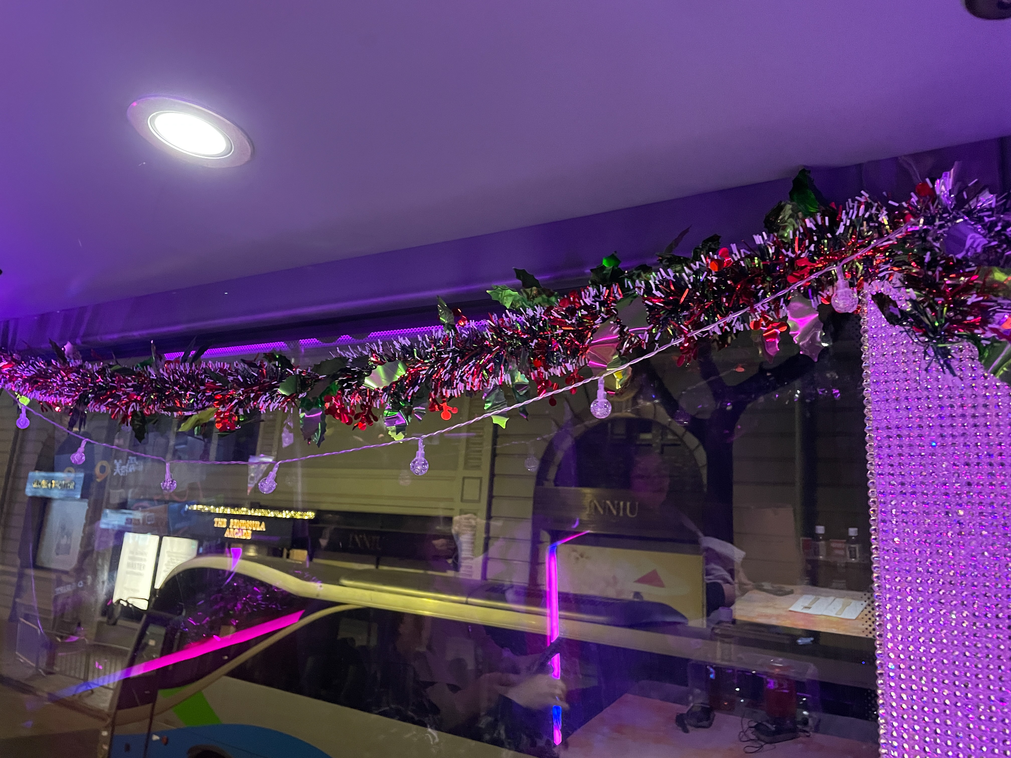 보랏빛의 블링 블링한 버스 마음에 드네요.