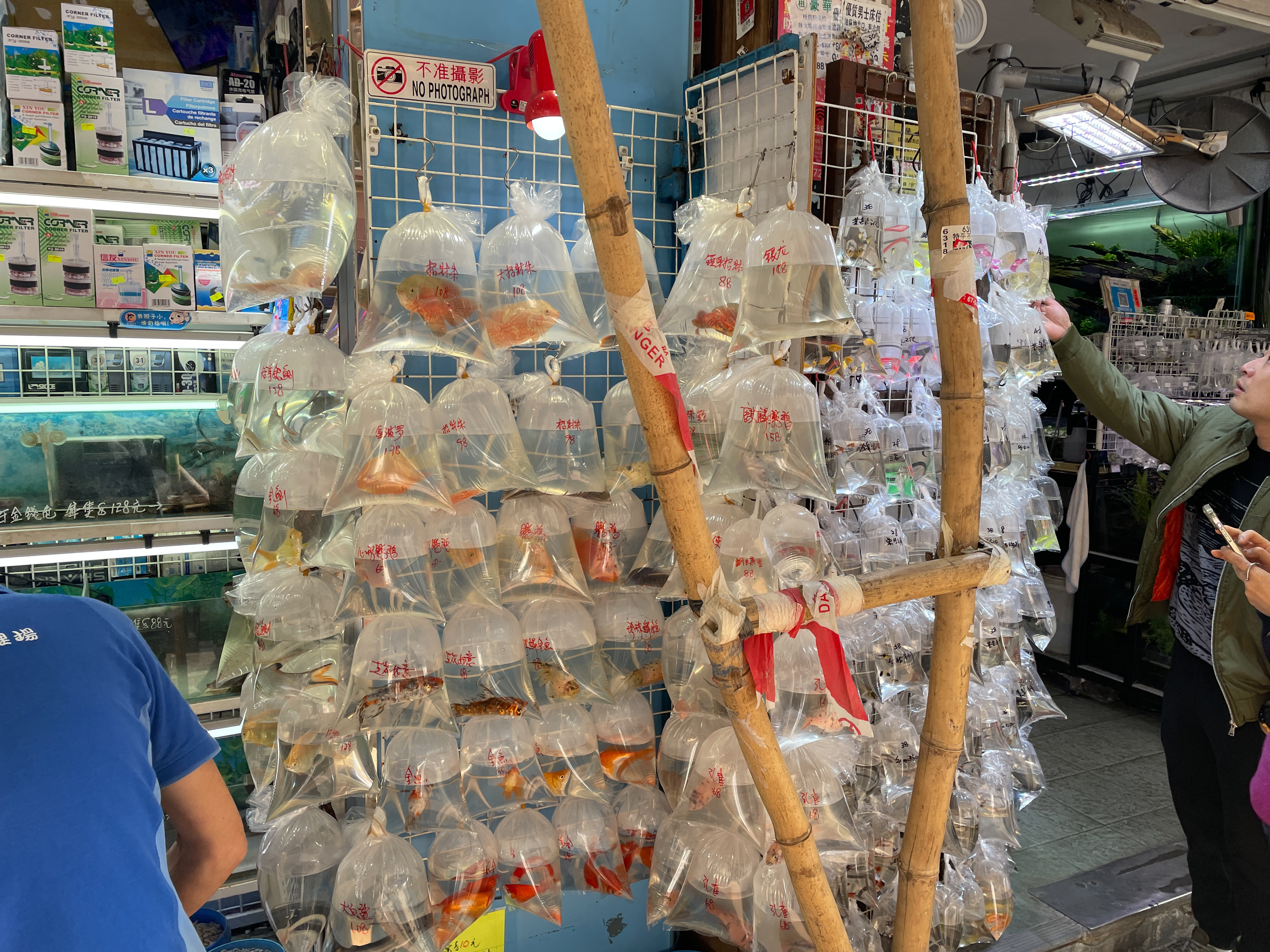 중국의 미덕 덕분에 금붕어를 사려는 손님들이